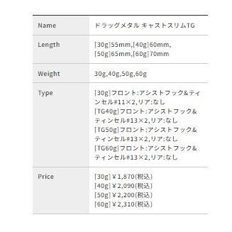 ドラッグメタルタングステン第二弾「ドラッグメタルスリムTG」の登場。 攻撃的に誘い、スレた魚も思わず反応するひと口サイズでスーパーライトジギングにもお勧め!
