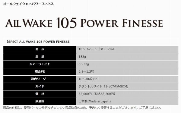 [◆沖縄/離島/北海道のお客様に対する発送が出来ません。]【メーカー希望小売価格\62000】【ジャンプライズ オールウェイク105パワーフィネス 商品の説明】
