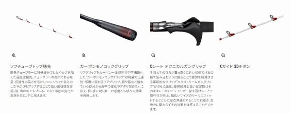 シマノが磨き上げてきたロッドテクノロジーを注入して生まれ変わったバイオインパクトヒラメ。スパイラルXコアとハイパワーXで強化されたブランクスは、シャープな操作性と座布団ヒラメに対しても負けないバットパワーを両立。海底、潮流、活餌の状況やヒラメの反応を探知するセンサーといえる穂先部には、チューブラー構造に特殊設計を施すことでしなやかさを与えた、軽量高感度ソフチューブトップを採用。操作性と感度を向上させました。また、タックルと釣り人の接点となるリールシートには、ロッド性能を飛躍的に高めるXシートテクニカルガングリップを搭載。繊細なロッド操作を実現するフロントトリガーと、高いパーミング性能を発揮し左右で使えるガングリップ形状により、軽快な誘い操作とファイト時の安定感を向上させました。