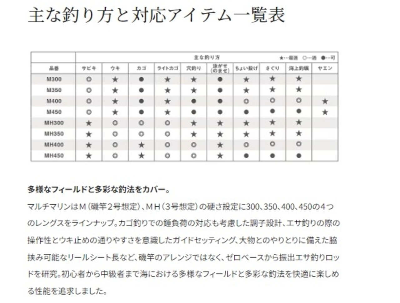 堤防・イカダ・海釣り公園・海上釣堀・船など場所を問わず、「エサ釣り」でのさまざまな魚たちとの出会いを愉しむためのマルチロッド。