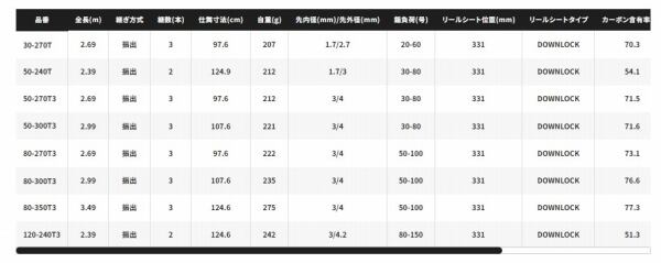 ネジレに強いハイパワーX構造を採用したブランクスは、操作性に優れ、アタリも明確に伝えてくれます。また、ラインの導入口にあたるガイドフレームには、ライン抵抗を抑える大口径エントランスガイドとライン収束用ガイドのダブルリング構造を備え、ロッド内部へのスムーズなライン導入を実現します。穂先タイプには、自然に喰わせるソフトな内径1.7mm穂先(30-270T、50-240Tに採用)と、ウキ止めも楽に通る内径3.0mm穂先(50-270T3〜150-270T3)を採用。インナーガイドロッド(中通し竿)は、鈎数の多い仕掛けや夜釣りでのガイド糸絡みなどのトラブルを解消することが特徴です。軽量でロッド基本性能を向上させたシーウィングは、より快適な釣りを楽しむことができます。