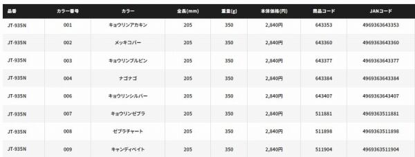 ※JT-920N JT-926N JT-930N JT-935N:2021年5月発売予定(007 キョウリンゼブラ、008 ゼブラチャート、009 キャンディベイト)