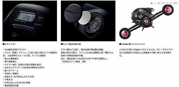 タイラバ船を運営するカリスマテスターの意見から生まれたディープタイラバ専用モデル。特筆すべきはドラグ性能と巻上げ性能。ATDとシンクロレベルワインド、そして「電子ドラグサウンド」を搭載し、細糸ラインにも滑らかで安心なドラグ性能を実現。さらにドラグ力の調整範囲(0.5kgから4.0kg)の幅を拡大し、より細かな調整を行うことが可能になった。細糸を使用するタイラバだからこそ、これらの機能にこだわることでバラシのリスクを低減し、アングラーをサポートする。基本性能は「HYPERDRIVE DESIGN」で磨きをかけ、高負荷時でも高い巻上げ性能を実現。そして、ディープタイラバの巻き重りを解消する150mmAL製クランクハンドルを採用し、一日を通して楽に実釣を続けることが可能となる。