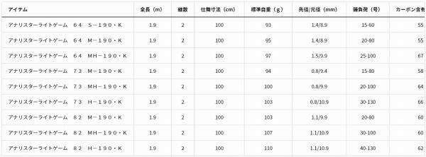 アナリスターライトゲーム 73 M−190 K