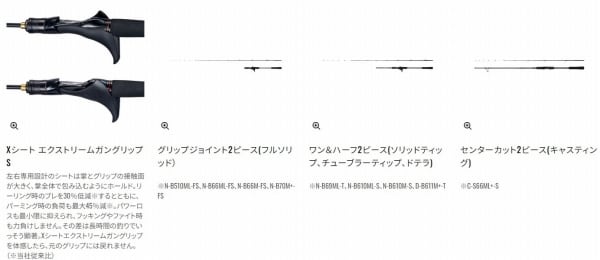 さまざまなフィールドや刻一刻と変化するコンディションに対応するため、3種類の乗せ調子に加えドテラ調子、キャスティングの合計5タイプをラインアップ。鯛ラバゲームの本質を追求するため、しなやかで、軽くて 強いブランクスを実現するスパイラルXコア、ブレやパワーロスを抑制したハイパワーXフルソリッド、高強度ソリッド穂先タフテック∞、トラブルレス性能とスムーズな糸抜けを両立したXガイド。さらに安定したリーリング&ファイトと疲労低減を実現するXシート エクストリームガングリップはベイトモデルに採用。先進のシマノテクノロジーを惜しげなく搭載したハイスペック・鯛ラバロッド、エンゲツ エクスチューンが多彩なフィールドのマダイに挑みます。