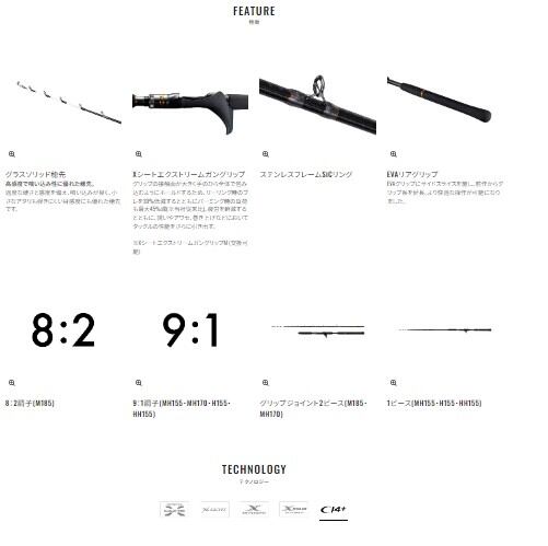ヤリイカの深場・速潮傾向に対応するべく、200号の錘を楽々シャクリ上げる直結マニア垂涎の「HH155」。また、中〜小型スルメを直結仕掛けで攻略する軽快なシャクリとパワーを両立させた「MH155」が新たに登場。すべてのモデルに共通するのは強靭なバットパワーとシャープな操作感。挑戦を続ける沖イカハンター達へ贈る、高性能沖イカロッドを船上でご体感ください。