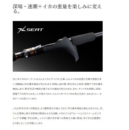 今作で4代目となる“イカセブン”。ヤリイカそしてスルメイカにおける近年のトレンドを追求しリニューアル。スパイラルXコア+ハイパワーXの採用によりシャープなシャクリが可能に。加えて穂先にはハイパワーXソリッドを搭載したことで穂先のブレが低減、イカのサワリをより鮮明に伝えます。また近年における状況変化により、釣り人や道具にかかる負荷は年々過酷になってきています。釣り人に掛かるシャクリ負荷を軽減し、ブレない竿捌きを可能にするXシートエクストリームガングリップをあらたに採用。さらに、脇挟みのしやすさを追求しリアグリップを+5cm延長させ最適化しました。