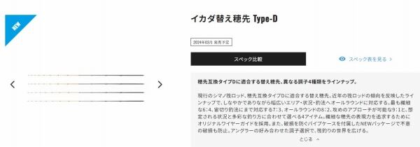 穂先互換タイプDに適合する替え穂先、異なる調子4種類をラインナップ。