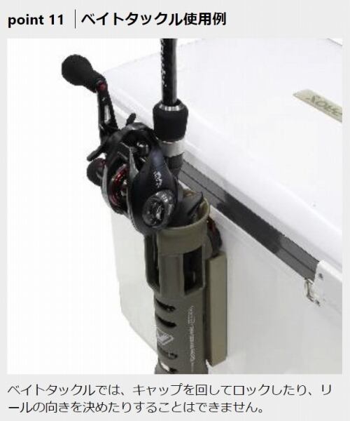 タックルの脱落を防ぐ回転式ロックキャップと、本体の落下防止ワイヤー付。