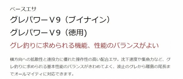 沈下速度や集魚力など、グレ釣りに求められる基本性能のバランスがきわめてよく、波止のグレから離島の尾長までオールマイティに対応できます。