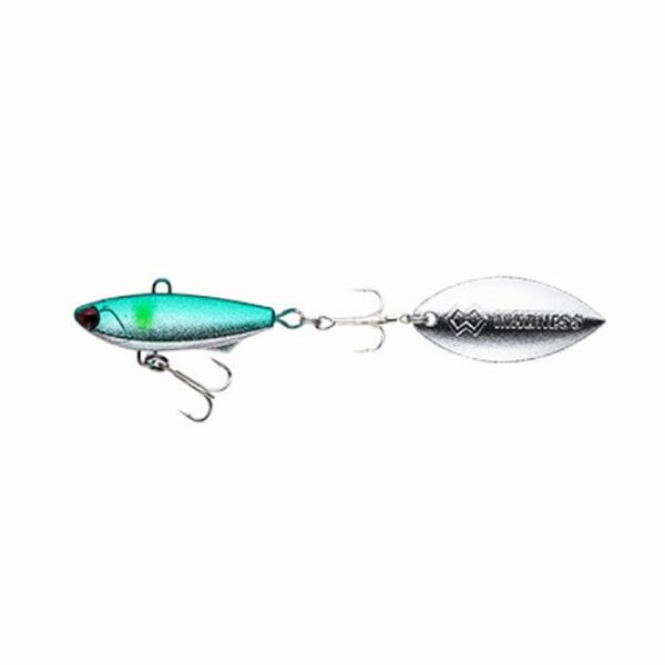 適度な柔らかさのシリコン製ブレードが不規則に回転することで食わせの間を作り出します。また、ボディー形状とシリコンブレードの効果で浮き上がりにくく一定レンジを長くトレースでき、デイゲーム最強の銀粉カラーとシリコンブレードならではのサイレント&ベイトライクな波動がスレたシーバス・青物・ヒラメ・キジハタ・根魚等に絶大な効果を発揮します