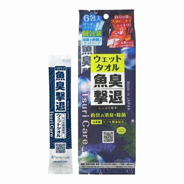 国産ヒノキ精油配合で、釣具についた魚臭をしっかり消臭。30cm×24cmの大判サイズでしっかり拭ける。コットン100%[Tsuri Care]