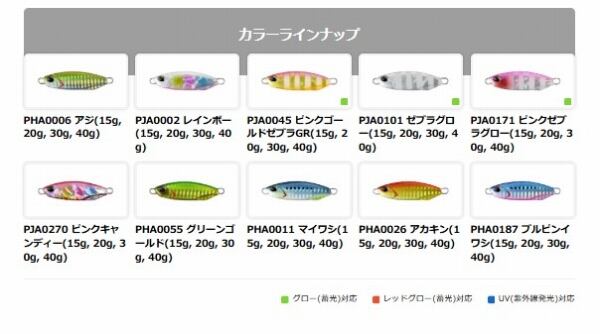 青物だけでなく、フラットフィッシュやロックフィッシュ等、様々な魚種に効果的なショアスロージギング専用ドラッグメタルキャストスロー。扁平ボディが生み出すピッチの細かいキラキラフォールでターゲットに喰わせの間を与え、ボディ形状の追求によりストレスとなる引き重り感を軽減。扁平ボディにありがちな飛びの悪さに対しても、絶妙なウェイトバランスで安定したキャスト性能を備えます。フック仕様はフロントにティンセル付ダブルアシストフック、リアにシングルアシストフックを採用。ボトムを攻めるための根掛かりしにくい設定です。