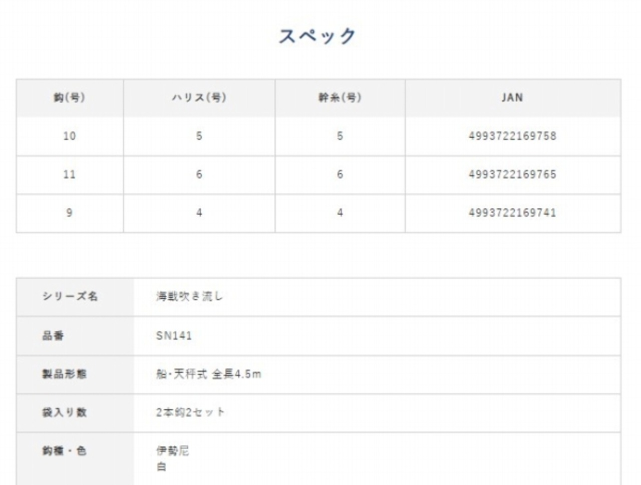 根ズレによるラインブレイクを軽減させる「フロロカーボンライン」採用。感度の良さと潮の流れにも負けないコシの強さで鈎の踊りが違います。