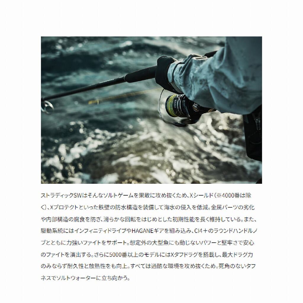 上位機種に引けを取らないパワーとタフネス、防水性能を装備して過酷なソルトシーンを攻め抜いてきたストラディックSW。そんな超実戦型リールが品番ごとに適材適所の進化を遂げてついにリニューアル。4000番は評価の高い23ストラディックをベースに、インフィニティクロス、インフィニティドライブ、アンチツイストフィンを投入してギアの耐久性向上やライントラブルの抑制などさらなる使い心地を追求。5000番〜10000番の各モデルにはXタフドラグを搭載し、耐久性・放熱性・最大ドラグ力でスペックアップを実現。ヘビーウェイトのルアーや大型魚とのファイトを視野に入れた仕様となっている。さらに5000番と6000番は、従来のベールオートリターン機構を排除してキャスト時のトラブルをシャットアウト。クラスを超えるパフォーマンスとともに、絞り込んだ全9アイテムがより実戦に即したシリーズを構築。