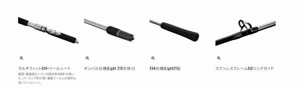 本体ブランクスは、しなやかで粘り強いUDグラス材をメインに軽量・高強度なカーボン材を適所に採用。そのブランクスをスパイラルXとハイパワーXで締め上げることで、長くしなやかながらもネジレに強く、ブレが少なくパワー伝達性に優れた曲がりを実現。ロッドのブレを排除することで、軽快な仕掛け操作・やり取りが可能に。落し込み釣りにおいて重要となる穂先は、餌付き・ベイトの挙動がわかりやすく誰にでも扱いやすく繊細に仕上げました。また、センターカット2ピース構造を採用することで持ち運び・輸送時も煩わしさを感じずに手軽に落し込み釣りを楽しむことが可能に。そしてリールシートには軽量でパーミング性の高いマルチフィットCI4+リールシートを採用。必要以上の強度を保ちつつ、軽量で操作性の高い落し込み竿が完成しました。