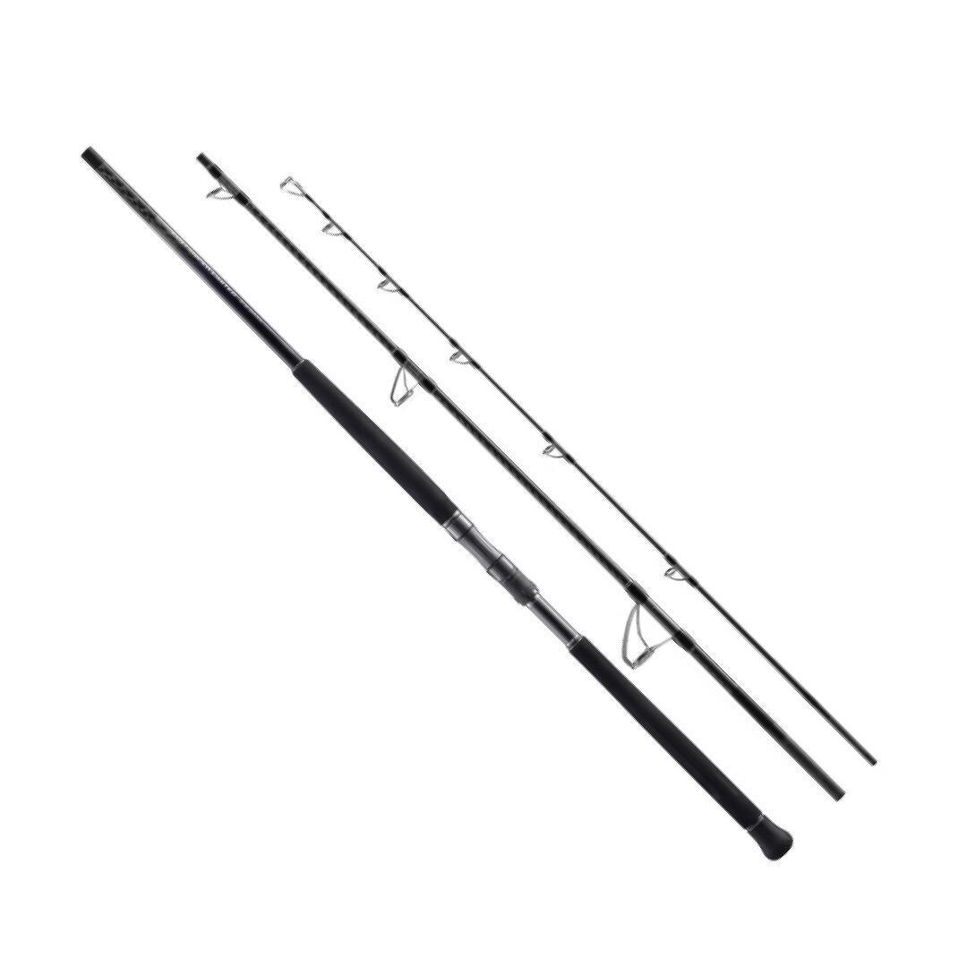 過酷なロックショアに判然たる意志で挑み、夢を渇望するアングラーに捧げるビッグゲームロッド。レコードフィッシュをバイトに持ち込むための「操作性」、不屈の「高強度」、最高レベルの「パワー」、アンバランスなラインシステムに対する「トラブルレス性能」など、ハードワークが要求されるビッグゲームロッドの性能を徹底追求。豪快さと繊細さの融合を求めて[並継]・ [ステップレングスデザイン]を採用し、#1はソフトティップ設計を採用。あらゆる変化のタイミングを掴みやすく、また短くすることで軽快性とレスポンスを向上。#2は硬さのギャップがある#1と#3をスムーズに荷重移行させるセクション。#3は太径・高剛性化することで体幹を強化し、モンスターサイズとの真っ向勝負のパワーファイトをサポート。離島遠征への利便性のみを意図した3ピース設計にあらず、高次元の強度とバランスを実現。また、MAXリールサイズ:SW18000番、PE:8〜10号を想定したタックルシステムに対応するために新規サイズの[Xガイドタッチフリーチタン]を採用。ライン放出時のバタつきを素早く収束させ、さらにトップ側のガイドリングサイズを従来よりも大口径化することで、ライントラブルレスとスムーズな糸抜けを実現。これにより、意図した方向へのキャスト精度、必要不可欠な飛距離を確保し、常にアングラー側が不利な立場に立つことが多いロックショアシーンを絶大な安心感でサポートする。