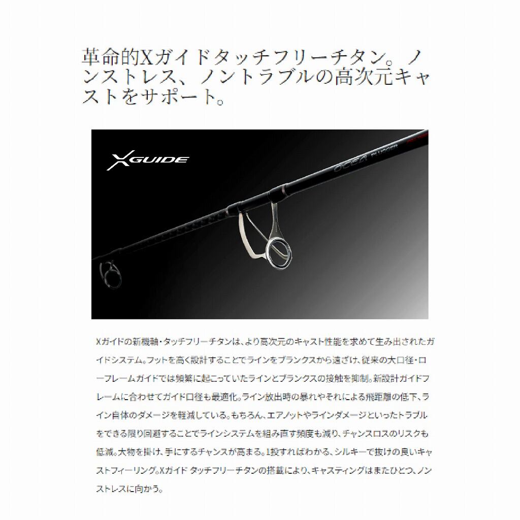 もっと強く、もっと遠くへ、そしてトラブルレスに。キャスティングゲームに求められる基本性能がさらに進化した新生オシアプラッガーフルスロットル。本質であるブランクスは、反発力を高めながらも曲がりのバランスを突き詰め、ブランクス全身が弓のごとく曲がることでエネルギーがスムーズかつ高効率に伝達され、アングラーの負担を低減しつつ安定したフルキャストとパワーファイトをサポート。そして新たにシマノ独自のXガイドタッチフリーチタンを採用し、キャスト性能が飛躍的に向上。リールから超高速で放出されていくラインのブランクスタッチを抑え、ノンストレスで突き抜けていくようなキャストフィールを実現。さらにアングラーが恐れるライントラブルやラインダメージも抑制。全ては誰よりもキャストを続け、一瞬のチャンスをつかむために。
