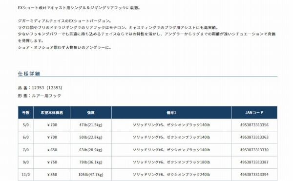 EXショート設計でキャスト用シングル&ジギングリアフックに最適。