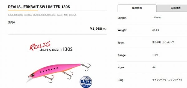 圧倒的存在感を誇るフルサイズジャークベイトに待望のSWリミテッドが登場!確かな実績で国内外を問わず信頼を寄せるレアリスジャークベイト13cmフルサイズモデルに限定ソルトウォーター仕様がラインナップ。偏平ボディが生み出す強烈なフラッシングと力強い水押し、広範囲へのアプローチを可能とする圧倒的な飛距離を誇ります。ショアゲームに加え、ボートからのシーバスやサワラ等青物狙いでも威力を発揮します。