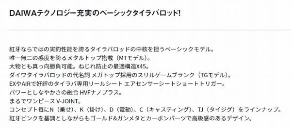 ダイワタイラバロッドの代名詞 メガトップ採用のスリルゲームブランク(TGモデル)。