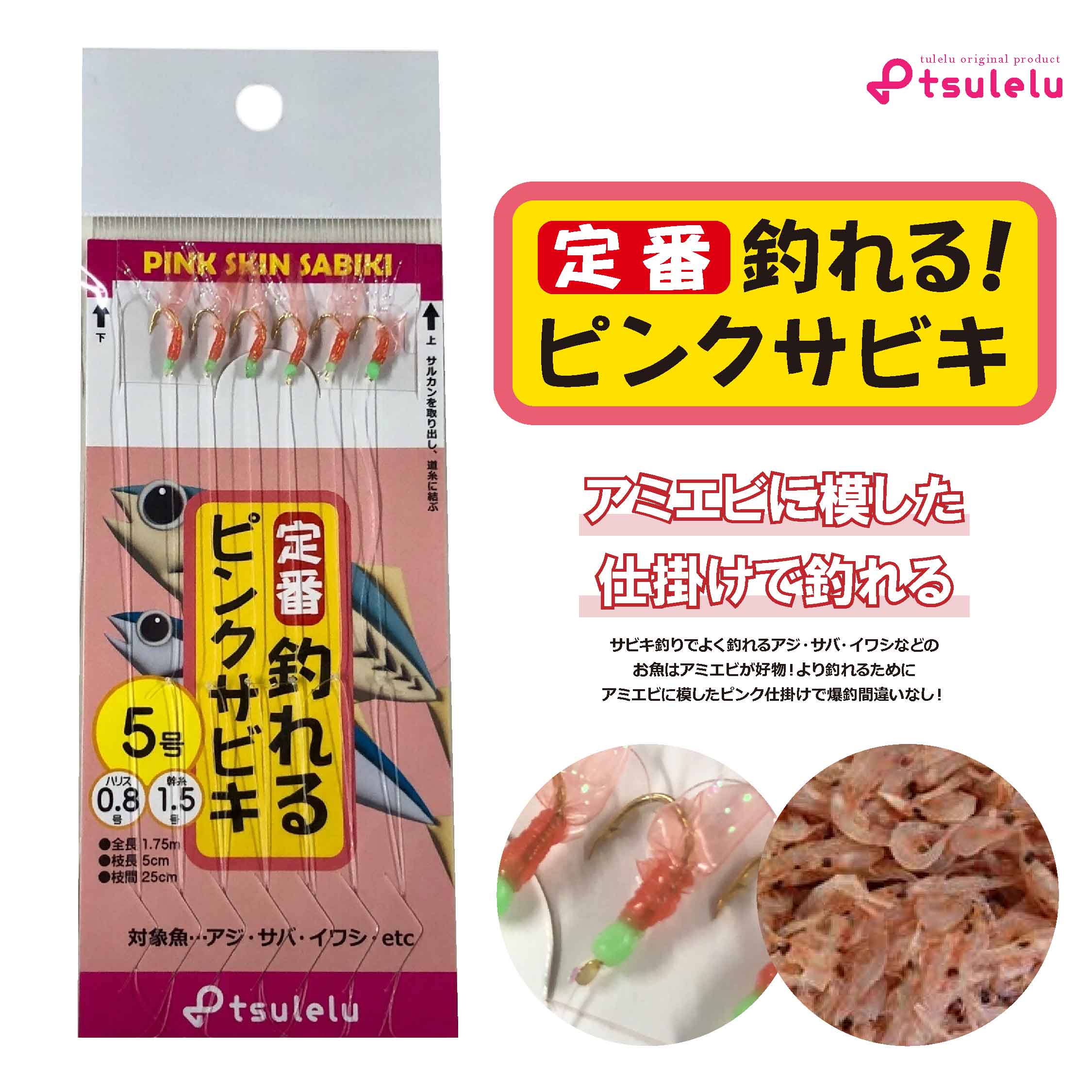 「釣れる!ピンクサビキ」は、ピンク色のスキンがまるでアミエビそっくりのリアルな質感と色合いを再現。魚が思わず飛びつく仕掛けで、初心者からベテランまで満足のいく釣果を実現します。