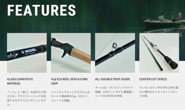 ベストセラーのオリジナルモデルからグラスコンポジットの配合を見直し、更なる軽量化に成功。しかし、グラスロッドならではのキャストフィーリングや乗りの良さはキープ。粘りのあるブランクスがトップウォーターのアクションの邪魔をせず、ルアーが水をしっかり噛んでくれる。