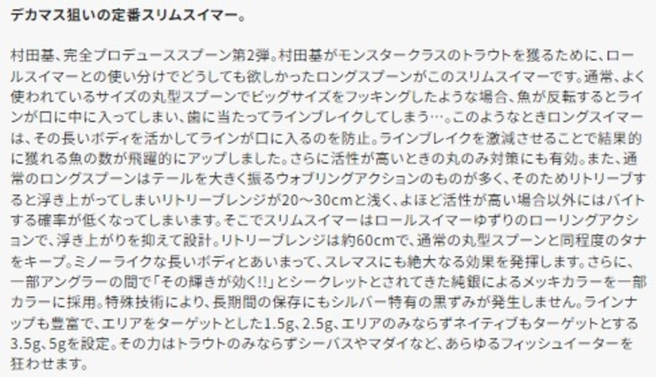 エリアスリムスイマー2.5gTR−0019 60Tのことなら当店へ トラウト スプーン シマノ製品を多数取り揃え