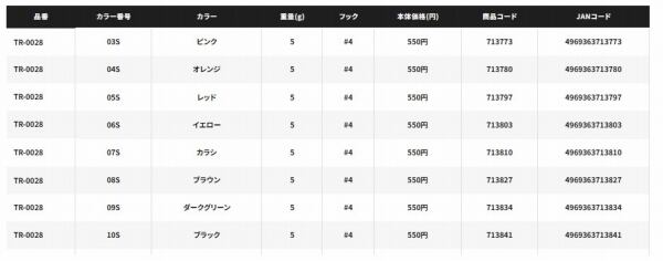 スリムスイマー5グラムのエリア仕様が追加になり、5グラムでロールスイマーと2種類のローリングアクションの使い分けができるようになりました。