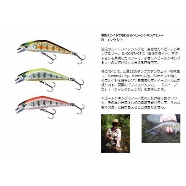 渓流のルアーフィッシングを一変させたヘビーシンキングミノー。 D-CONTACTは「慣性スライド」アクションを実現したミノーで、まさにヘビーシンキングミノーの火付け役とも言える存在です。