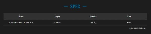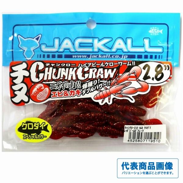 豊富なラインナップを誇るジャッカルのクロダイシリーズの中で、最もアピール力の高いアイテムがチャンクロー2.8”です。大きめのボディと多彩なパーツから繰り出される複雑な波動がクロダイの捕食本能を刺激します。ズル引き主体の釣り方だけでなくバースや岸壁など狙う縦の釣りでも活躍することでしょう。また、クロダイを誘う”匂い”にも徹底的にこだわり、カキとエビの身を粉末化した強力なフレーバーを配合しました。実績の高いカラーラインナップで更なる釣果アップに貢献します。