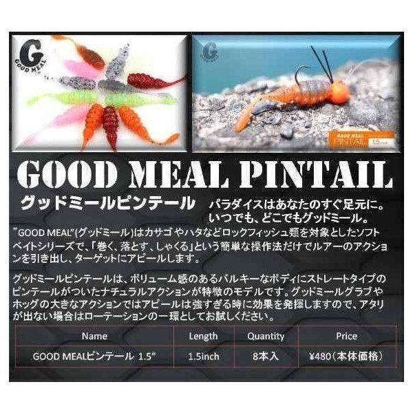 ボリューム感のあるボディにストレートタイプのピンテールがついたナチュラルアクションが特徴のワームです。グッドミール グラブ や グッドミール クロ― などの大きなアクションで誘ってもアタリが出ない場合はローテーションの一環としてお試しください。