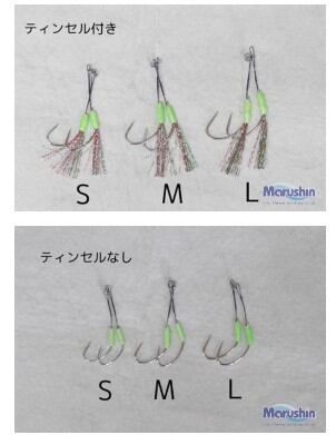 さらに状況に応じて使い分けられる、ティンセル付き、ティンセルなしと、3種類のフックサイズを選ぶことができます。