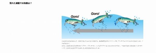 波立つ湖面でもバスを惹きつけるバンピーサウンドと、タダ巻きするだけで発生するイレギュラーアクション。特有の水飛沫と共にフラッシングを放つオリジナルプロップや、絡みつくような引き波でビッグバスを確実に狂わせる威力。