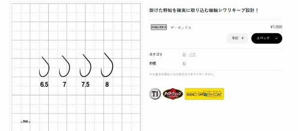 長めに設定した超尖鋭鈎先と「ナノスムースコート」による高貫通力が、鈎先に触れた野鮎を確実に捉え、キープ力の高い鈎先形状により鮎に深く刺さり込むことで掛けた野鮎を逃しません。