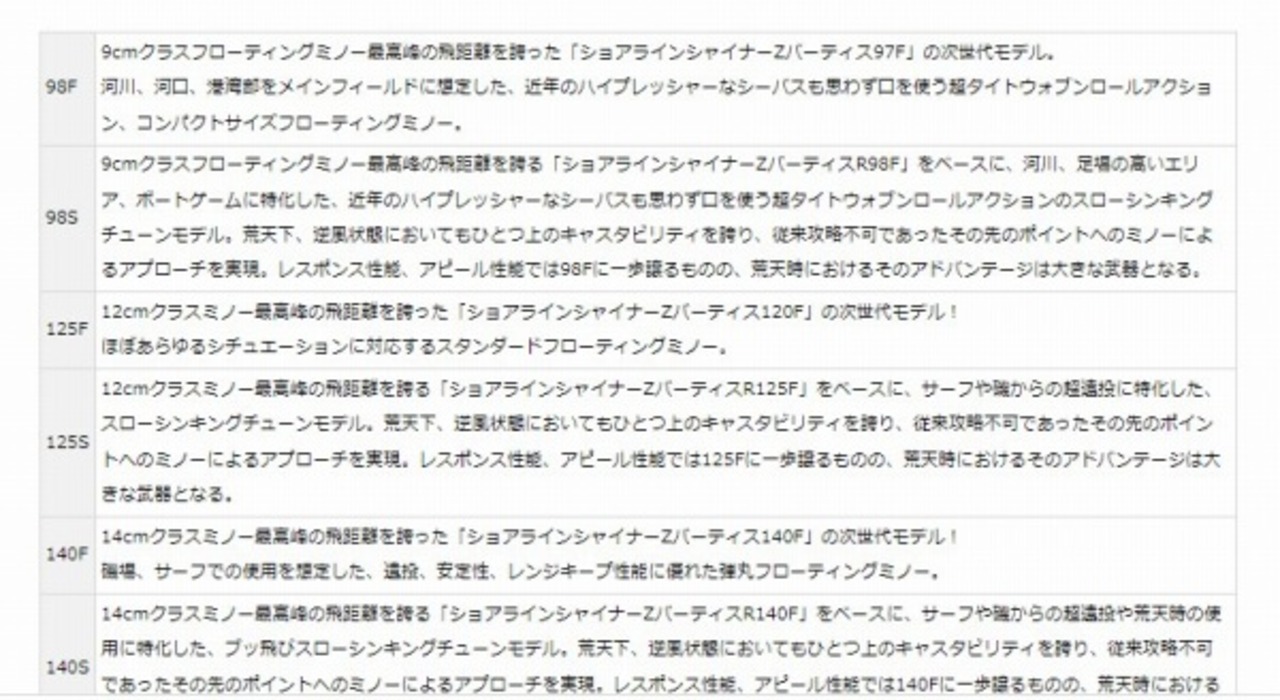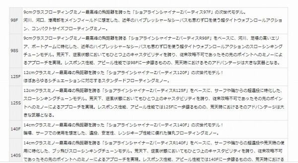 9cmクラスミノー最高レベルのキャスタビリティを継承した万能モデル。河川、河口、港湾部をメインフィールドに想定したコンパクトサイズ。近年のハイプレッシャーなシーバスも思わず口を使う超タイトウォブンロールアクション。ボディ後部形状変更、タングステンウエイトワイヤーオシレート機構のサクサス加工シャフト+キックバックスプリング追加により、飛距離のUPと同時に立ち上がりスピードも大幅にアップ。
