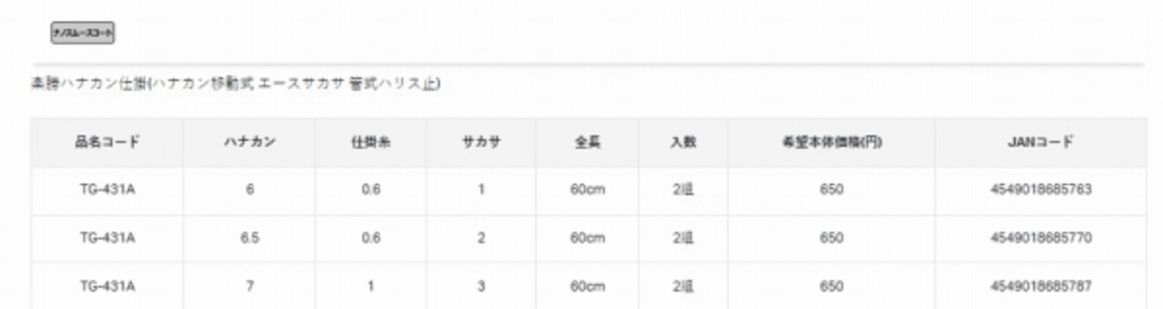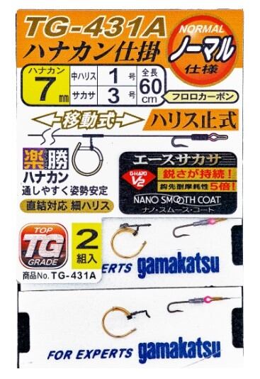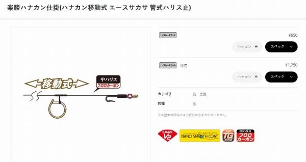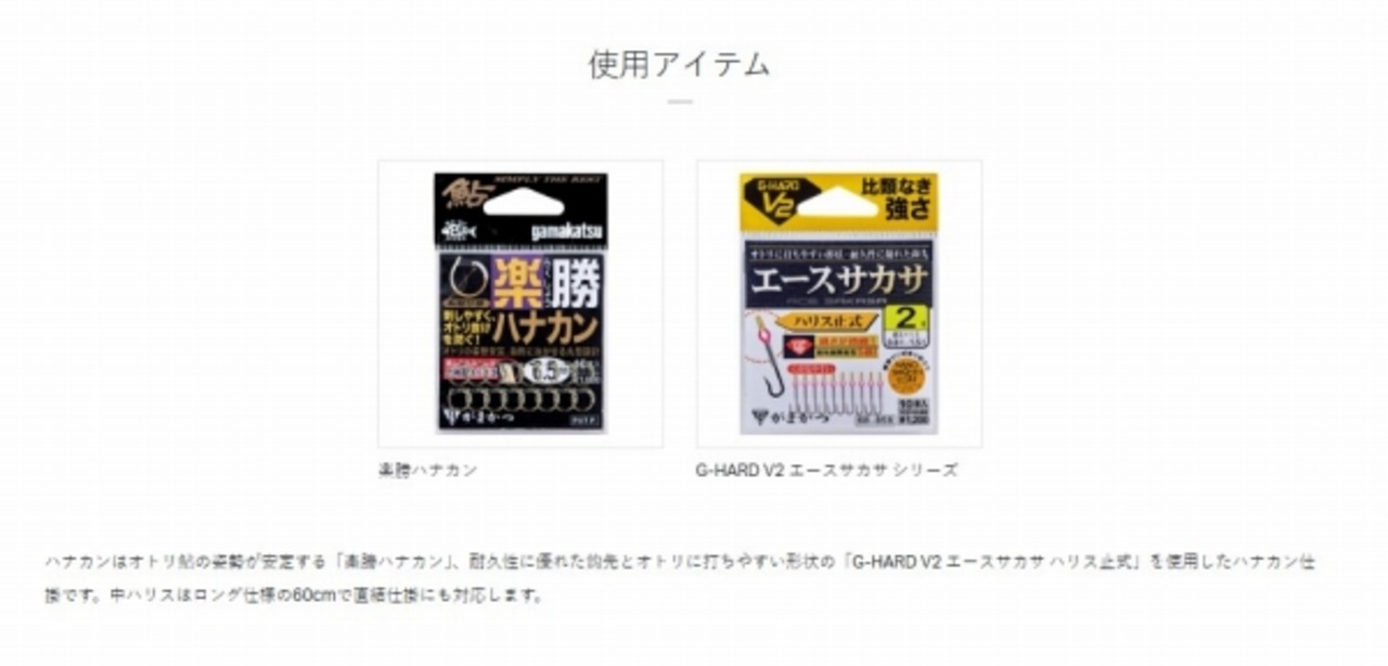 中ハリスはロング仕様の60cmで直結仕掛にも対応します。