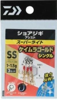 アジング、メバリングなどライトソルトゲームで使用する1〜7g前後のマイクロメタルジグや流行りのスーパーライトショアジギングで使用する5〜15g前後のメタルジグに対応するシングルアシストフック。