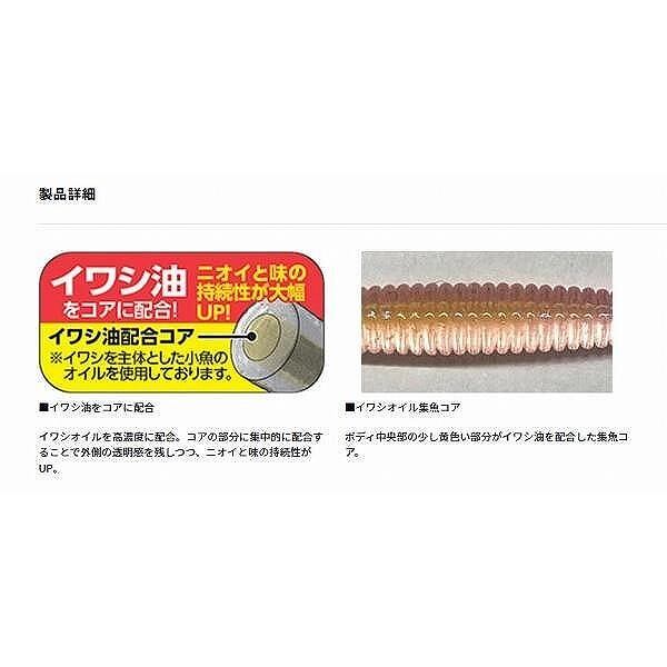 ライトゲームの定番ワーム「ビームスティック」が、形状や素材はそのままに、集魚コア仕様になってリニューアル。イワシ油をコアの部分に集中的に配合することで外側の透明感を残しつつ、ニオイと味の持続性がUP。