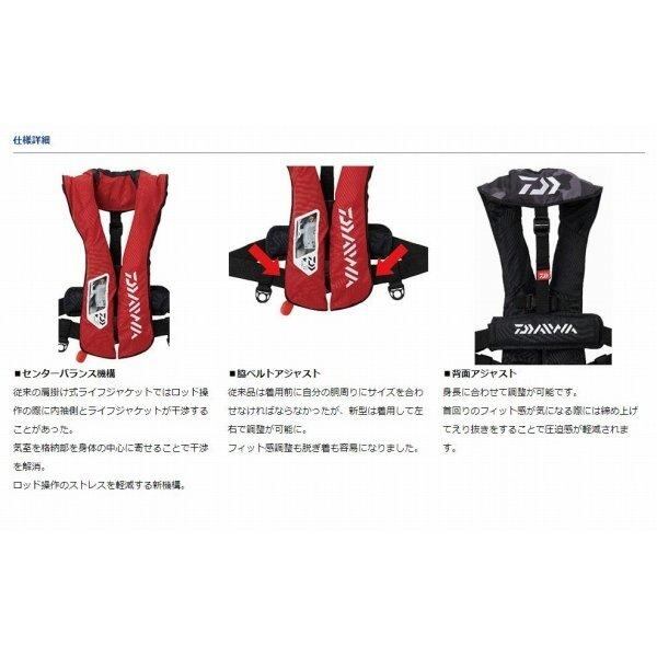 気室格納部を身体の中心に寄せたセンターバランス機構を採用することでライフジャケットと袖の干渉を大幅に軽減。釣りへの集中力を切らさない実釣モデル。ボンベとカートリッジの装着状態が一目でわかる、ダブルインジケーター搭載。