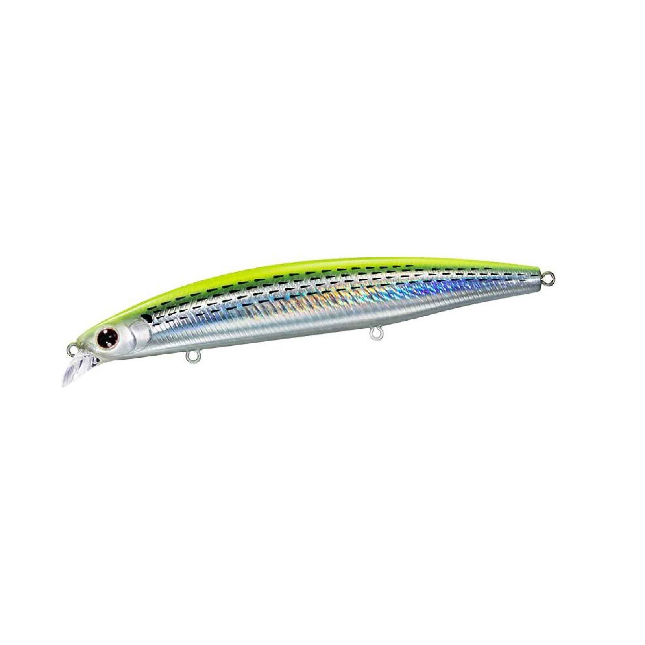 オープンエリアにいるシーバスを「誘き寄せて釣る」ことをコンセプトに開発されたハイアピールシンキングミノー。タダ巻きひとつでオープンエリアでも遠くから魚を誘き寄せる。しかも水平姿勢で泳ぐためスレた活性の低い居着きシーバスにも口を使わせる。「ショアラインシャイナーZセットアッパー125SDR」譲りの空気抵抗を抑えたボディ形状と、「ぶっ飛びサイレントウエイトオシレートシステムPLUS」との相乗効果で、Max73.5m(当社テスト)という驚きの飛距離を生み出す。