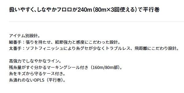 扱いやすく、しなやかフロロが240m(80m×3回使える)で平行巻