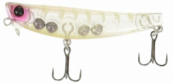 メバルを中心にクロダイなどのライトゲームやマイクロベイトパターンのシーバスゲームに。巻くと浮き上がる浮上設計で、ウィードやゴロタ周辺に潜むターゲットにも積極的にアプローチ。表層引き波のティザー効果を発揮し、フィッシュイーターへ強烈にアピール。巻いて寄せる、止めて食わせるなど様々なパターンを楽しめる。シミーフォールでも緩やかにロールを発動しバイトのチャンスを拡大。ジグヘッドリグやフローティングミノーでは攻略が難しい沖の表層攻略にも。