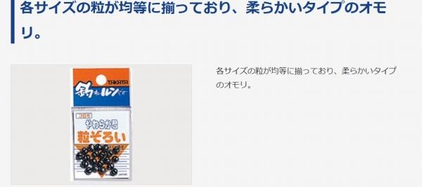 各サイズの粒が均等に揃っており、柔らかいタイプのオモリ
