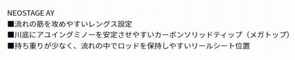 ■川底にアユイングミノーを安定させやすいカーボンソリッドティップ(メガトップ)