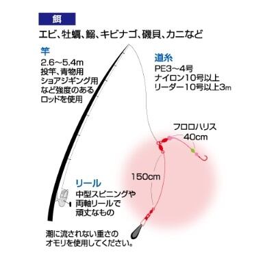 釣れる魚は大型が多いので玉網は必ず用意してください。