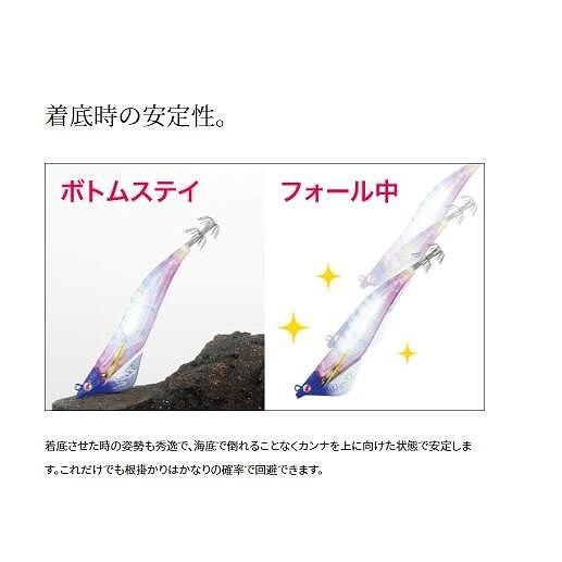 着底させた時の姿勢も秀逸で、海底で倒れることなくカンナを上に向けた状態で安定します。これだけでも根掛かりはかなりの確率で回避できます。