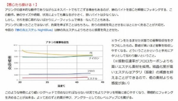 ■原料から紡糸・加工まですべてを見直した特殊エステル製法により、高感度、高強力な “鯵の糸” が完成しました。■エステルラインの最大の弱点であった「糸撚れ、使い難さ」を軽減することに成功。直進性が向上したことにより、軽量ジグ単でも糸が張りやすく潮の動きやアタリが明確に伝わります。