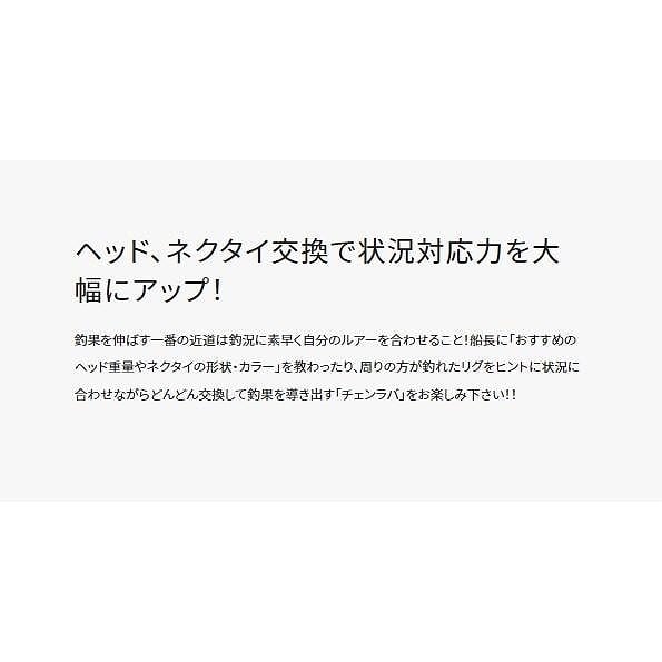 釣果を伸ばす一番の近道は釣況に素早く自分のルアーを合わせること!船長に「おすすめのヘッド重量やネクタイの形状・カラー」を教わったり、周りの方が釣れたリグをヒントに状況に合わせながらどんどん交換して釣果を導き出す「チェンラバ」をお楽しみ下さい!!