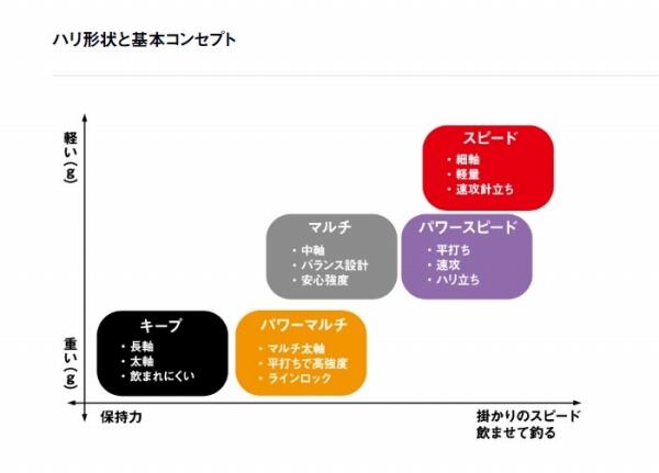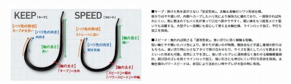 「飽食の時代」と言われる昨今、喉の奥まで餌を吸い込んでくれるグレは少ない。アゴの端でわずかに立ち、次の瞬間には吐き出されてしまうはずのハリ先をたちどころに貫通させてしまう夢のハリが誕生した。滑りの良いフッ素系特殊プレーティング加工(SaqSas加工)と鋭いハリ先がもたらす貫通力が、驚異のフッキング率を叩き出す。